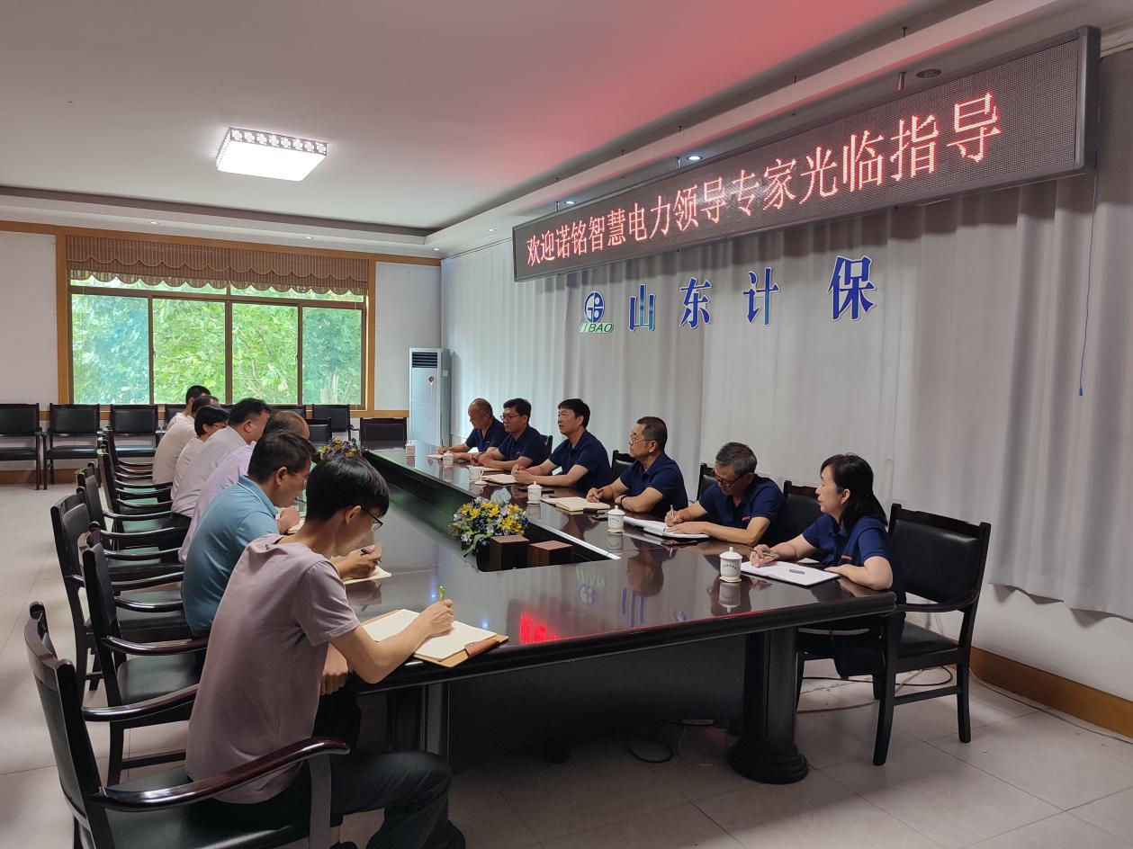 2021年7月22日,山东诺铭智慧电力有限公司领导、专家一行6人来到山东计保进行项目调研、洽谈合作。公司董事长荣博亲自陪同,并带领技术团队参与座谈会。